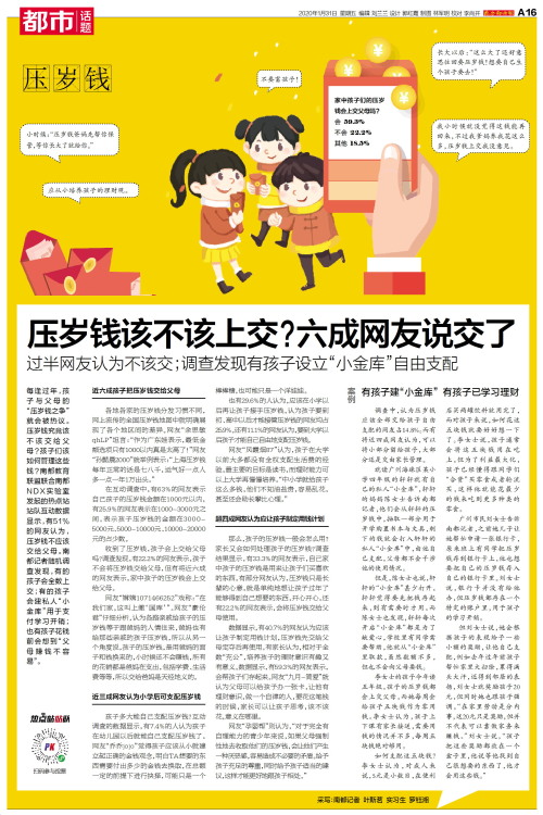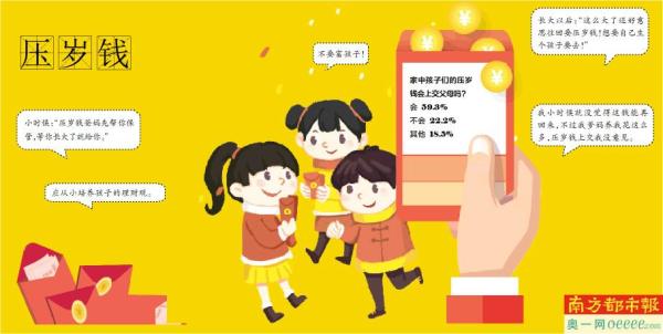 每逢过年,孩子与父母的“压岁钱之争”就会被热议。压岁钱究竟该不该交给父母?孩子们该如何管理这些钱?南都教育联盟联合南都NDX实验室发起的热点站站队互动数据显示,有51%的网友认为,压岁钱不应该交给父母。南都记者随机调查发现,有的孩子会全数上交;有的孩子会建私人“小金库”用于支付学习开销;也有孩子花钱前会想到“父母赚钱不容易”。