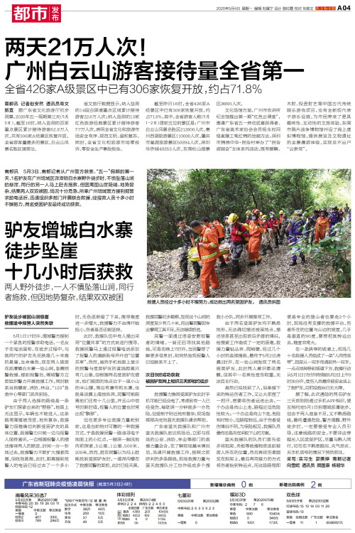 南都讯 记者赵安然 通讯员粤文旅宣 据广东省文化旅游厅初步测算,2020年五一假期第三天(5月3日),截至16时,纳入监测的百家重点景区累计接待游客62.8万人次,共有306家A级景区恢复开放,全省游