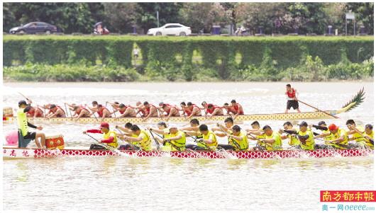 昨日下午,广州白云区均禾街石马村对出的流溪河上,正在举行石马龙舟友谊赛,共有16支队伍参加。 南都记者 黎湛均 摄