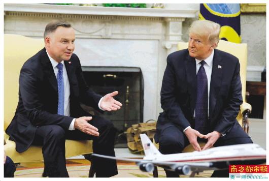 特朗普当天与到访美国的波兰总统杜达在白宫举行会谈。在双方联合记者会上,特朗普说,波兰提出希望增加驻波美军规模,美国可能会将部分从德国撤出的美军部署至波兰。他强调,波兰会承担驻军费用。