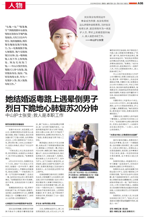 她结婚返粤路上遇晕倒男子 烈日下跪地心肺复苏20分钟
