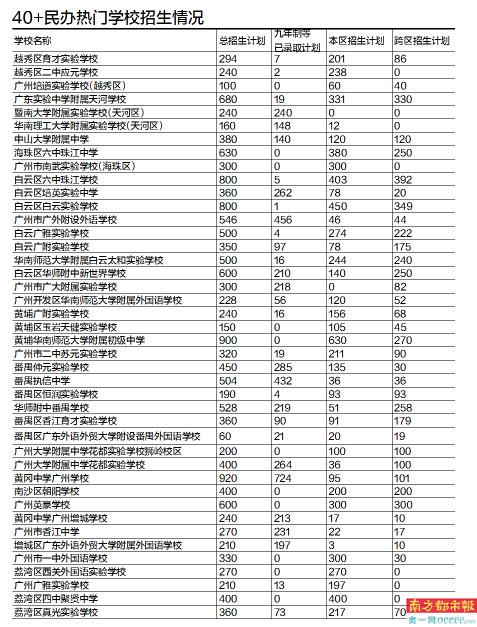 南都讯 记者梁艳燕 昨日,广州巿义务教育招生报名系统公布了2020年广州各民办初中实际面向社会招生人数,逾3万个学位虚位以待。南都记者整理了40多所民间热捧的民办学校招生情况,快来看看你心仪的学校还有多少学位吧。