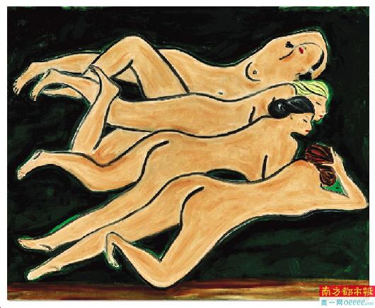 常玉《绿色背景四裸女》,油彩纤维板,100cm×122cm。