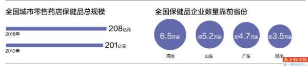 受上述多种因素影响,来自米内网的数据显示,2019年中国城市零售药店保健品总规模仅为201亿元,近四年来增速首次为负值。而在2018年,上述数据首次突破200亿元关口,达到208亿元。据悉,2015~2018年四年间,保健品的销售占中国城市零售药店总体销售的7%左右,销售额增速保持在5%~6%的区间。