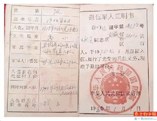 父亲汪心连(汪新连)的退伍证。