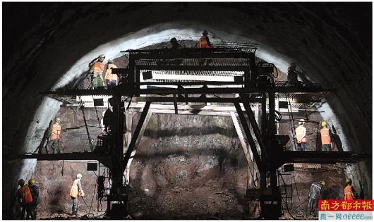 2019年5月25日,中铁十八局集团有限公司(原铁道兵第八师)建设者在玉磨铁路(玉溪至磨憨)大尖山隧道施工。 新华社发