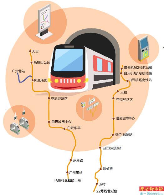 22号线北延段(芳村至白云机场城际) 长约40.2公里,设9座车站