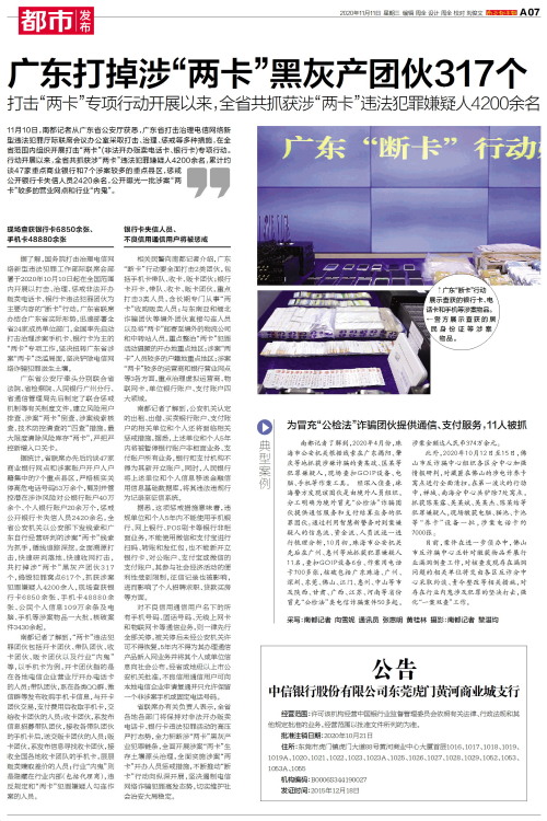 广东打掉涉“两卡”黑灰产团伙317个