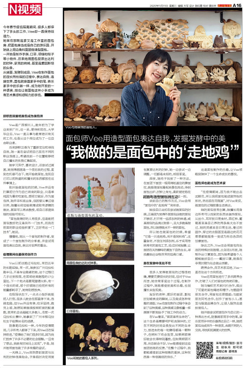 Vee与她装饰的面包人。 花瓶与造型面包的互动。 用面包做的达利式钟表。 口罩面包。 Vee和她的面包人系列。