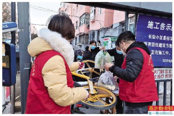志愿者们分成了10组,每天站岗10个小时,一小时轮一组。一组两个人,里外各一个。“外面志愿者负责疏散小商小贩,让他们有序供应食物,也告诉他们不要挣没良心的钱。如果他们太忙,我们会帮忙把菜递到居民手里,里边的志愿者劝诫居民间隔一米距离买菜。”张静说。
