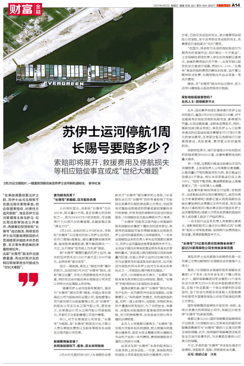 “在事故调查结果出炉之前,苏伊士运河当局暂不会提出相关索赔事宜。但会保留索赔权,对责任方追究赔款”,埃及苏伊士运河管理局主席乌萨马·拉比耶此前曾如此公开表示。而随着巨型货柜轮“长赐号”成功脱浅