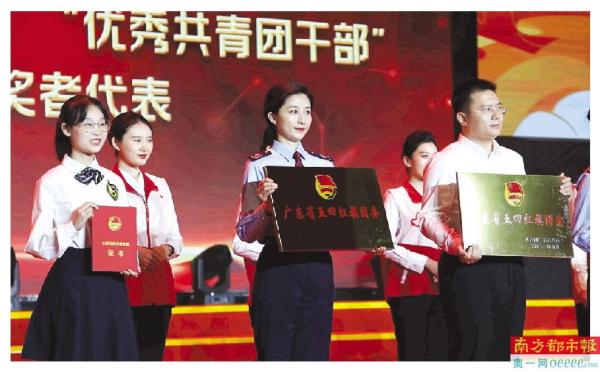 广东省“五四红旗团委”“五四红旗团支部”“优秀共青团员”“优秀共青团干部”等获奖代表上台接受颁奖。