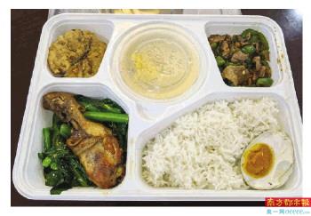 在白鹤洞街的观鹤社区负责上门做核酸检测的荔湾区中医院谭医生的午餐。 受访者供图