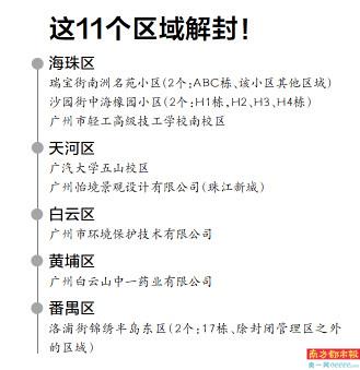 继荔湾汇鑫阁解封后,广州陆续解封多个封闭封控区域!昨日,广州市新冠肺炎防控指挥部发布《广州市11个区域解除封闭封控管理措施》。通告表示,同意解除番禺区洛浦街锦绣半岛东区等5个区内11个区域的封闭、封控管理措施。