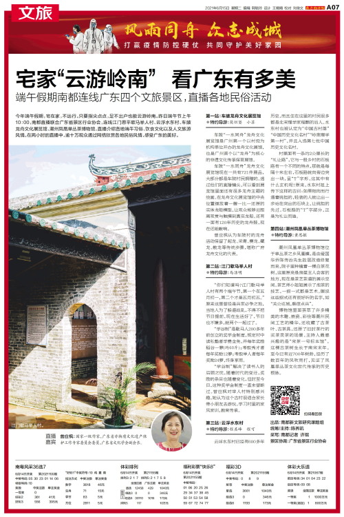 直播嘉宾 曾应枫:国家一级作家,广东省非物质文化遗产保护工作专家委员会委员,广东省文化学会副会长。 今年端午假期,宅在家,不远行。只要指尖点点,足不出户也能云游岭南。昨日端午节上午10:00,