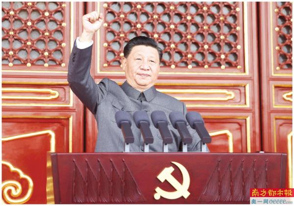 7月1日上午,庆祝中国共产党成立100周年大会在北京天安门广场隆重举行。中共中央总书记、国家主席、中央军委主席习近平发表重要讲话。 新华社发
