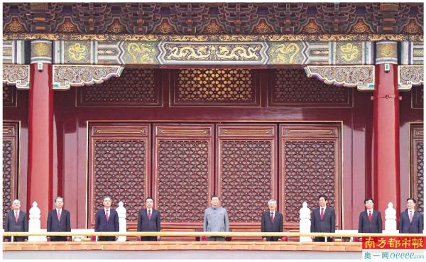 上午7时53分,在欢快的乐曲声中,习近平等党和国家领导人来到天安门城楼主席台,全场爆发出热烈掌声。