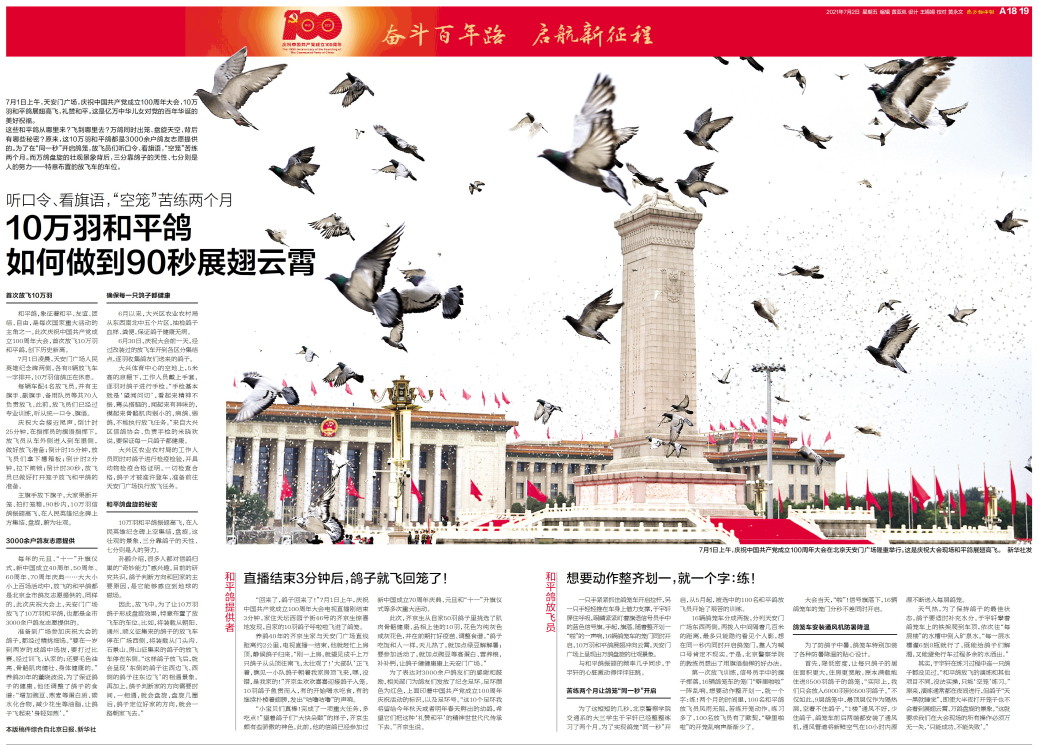 7月1日上午,庆祝中国共产党成立100周年大会在北京天安门广场隆重举行。这是庆祝大会现场和平鸽展翅高飞。 新华社发 7月1日上午,天安门广场,庆祝中国共产党成立100周