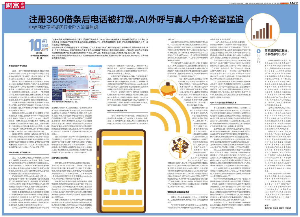 第三问:数字金融服务合规调查 第一篇 “注册一周多,电话被360借条打爆了,反复催促我去借钱。”一名广州本地的消费者近日向南都记者反馈。与此同时,官方通报中,消费者对于贷款理财电销的投诉也远超其