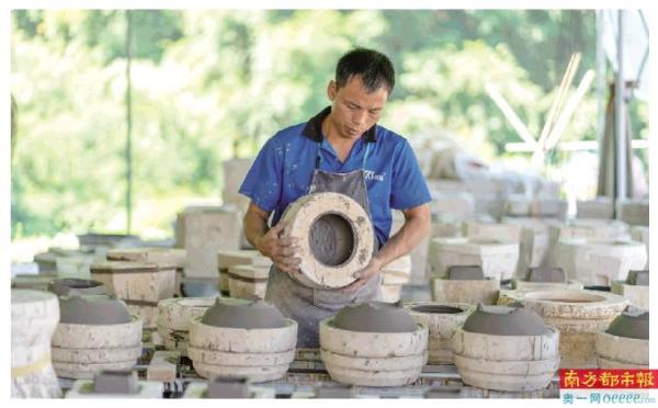 据介绍,四会早在明代就有了制陶的历史,石狗镇鹅春古窑延续传统的古法制陶工艺,其主要的工艺精髓就是古窑木柴制。煅烧过程就像是一个古老的仪式,沿袭古法生产,以木柴为燃料,全由烧窑师傅操纵龙窑炉火,因其灶体呈抛物线状的结构,避免了灶火往上冲的现象,使得火温均匀,因此烧制出来的陶器品质上乘。偶有“窑变”的效果,色彩神韵千变万化,其效果是现代的窑炉所无法替代和复制的。每当龙窑开窑的日子,来自广州、佛山等地的陶艺大师和收藏家们共聚四会,大家都被古窑神奇的釉色所震撼。