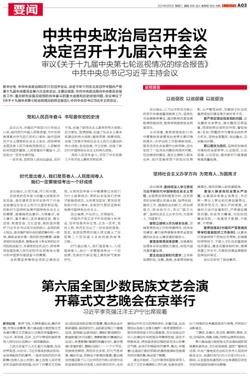 新华社电 中共中央政治局8月31日召开会议,决定今年11月在北京召开中国共产党第十九届中央委员会第六次全体会议,主要议程是,中共中央政治局向中央委员会报告工作,重点研究全面总结党的百年奋斗的重大成