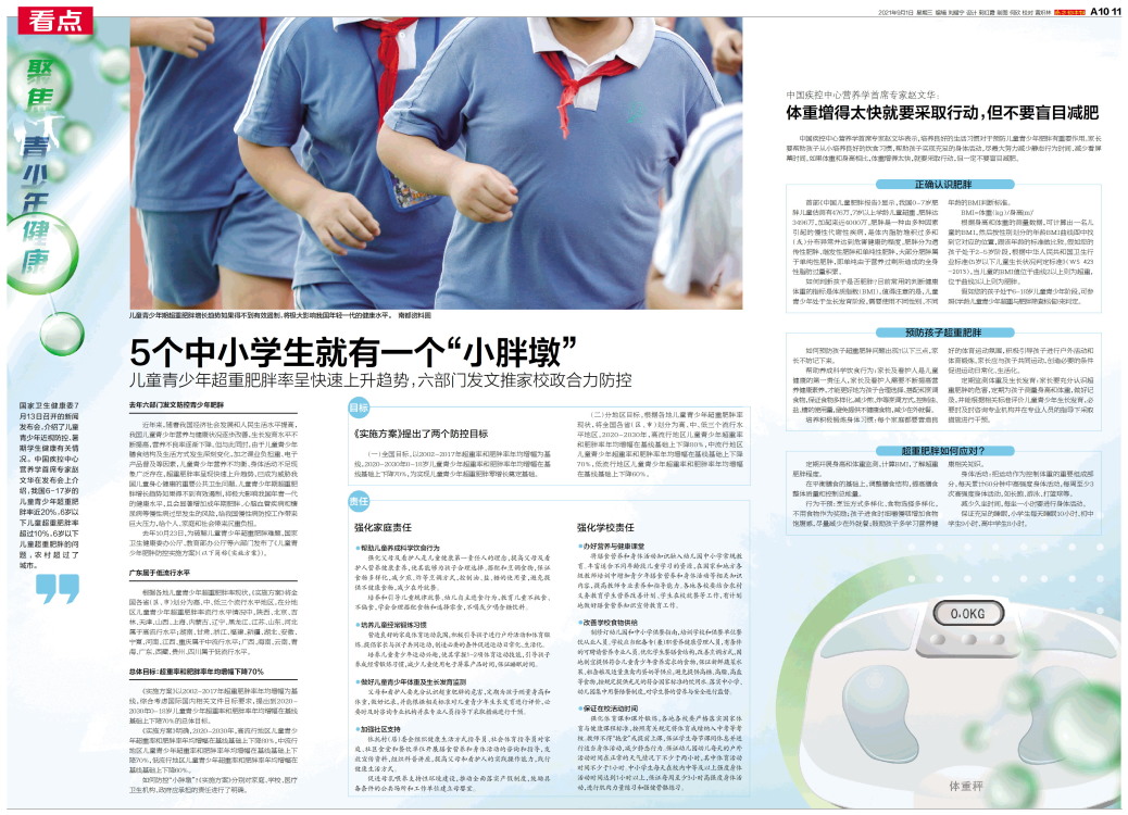 国家卫生健康委7月13日召开的新闻发布会,介绍了儿童青少年近视防控、暑期学生健康有关情况。中国疾控中心营养学首席专家赵文华在发布会上介绍,我国6-17岁的儿童青少年超重肥胖率近20%,6岁以下儿童