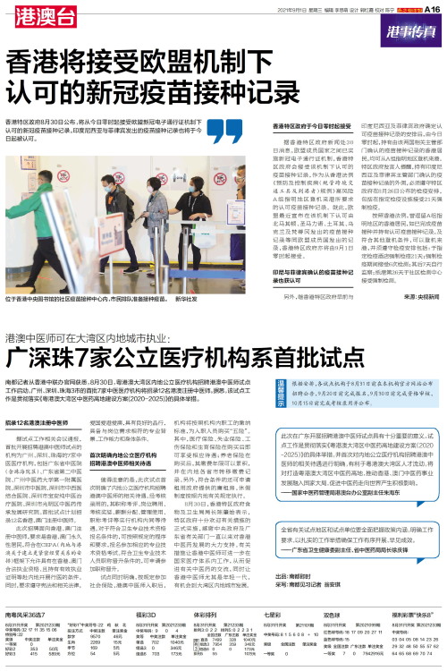 南都记者从香港中联办官网获悉,8月30日,粤港澳大湾区内地公立医疗机构招聘港澳中医师试点工作启动,广州、深圳、珠海3市的首批7家中医医疗机构将招录12名港澳注册中医师。据悉,该试点工作是贯彻落实《