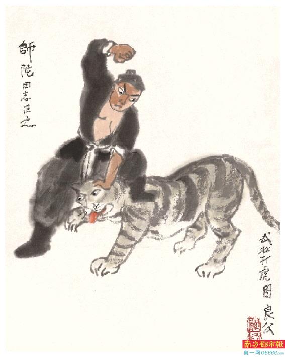 关良《武松打虎》,34cm×27cm,纸本水墨设色。