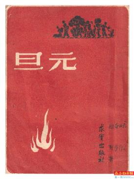 还是说《元旦》。此书由香港求实出版社出版,“民国三十八年七月初版,定价港币一元三毫”,这“毫”在内地大概就是“角”吧,印数三千册。小小的六十四开本,像袖珍型的口袋书。封面颇有特色,书名《元旦》两个留白的老宋体,上部是一幅丰收归来的剪影,左下是一簇留白的火焰,除了留白和黑的剪影画,封面底色是一片大红,似乎象征着新中国就要诞生的喜庆。