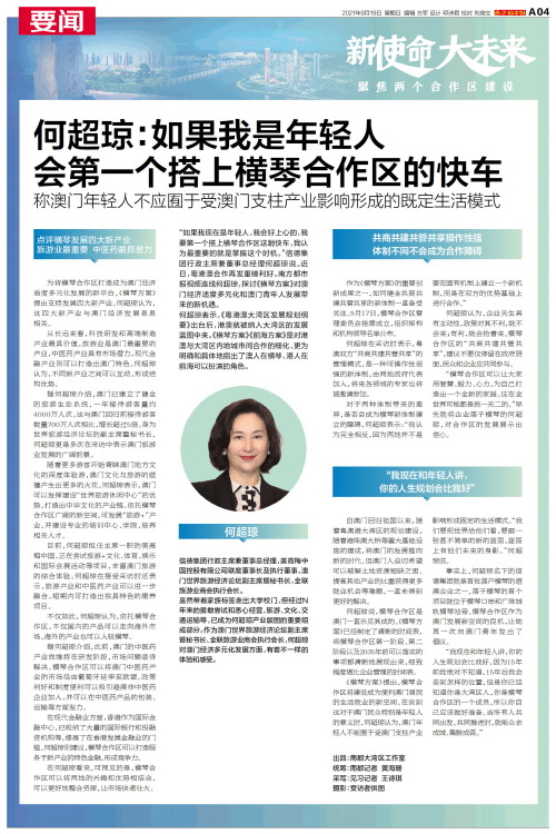 何超琼:如果我是年轻人会第一个搭上横琴合作区的快车