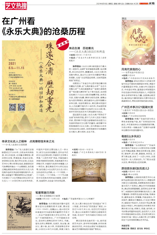 重点推荐 珠还合浦 历劫重光 ——《永乐大典》的回归和再造 时间:8月5日—11月15日 地点:广东省立中山图书馆C区负二层特藏展厅 推荐理由:《永乐大典》是我国古代最大的一部类书。
