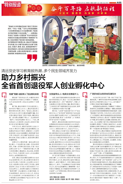 助力乡村振兴 全省首创退役军人创业孵化中心