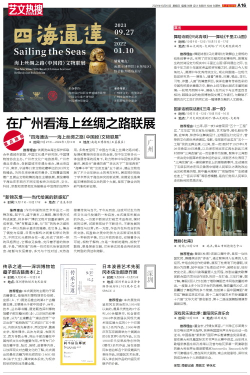 广州 重点推荐 “四海通达——海上丝绸之路(中国段)文物联展” 时间:9月27日—2022年1月10日 地点:南越王博物院(王墓展区) 推荐理由:该展览由海丝保护和联合申遗城市联
