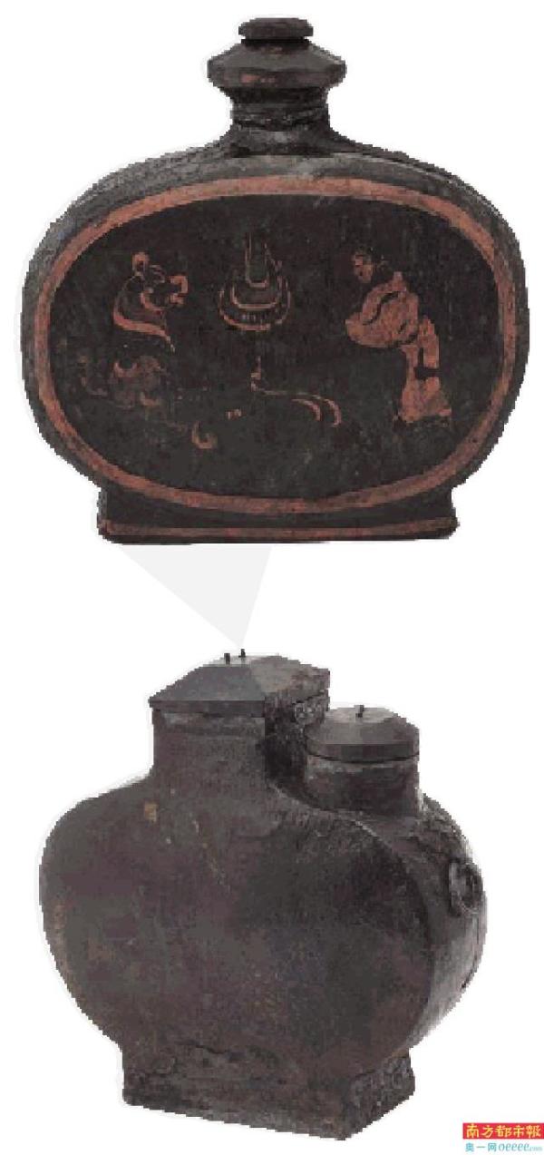 ←湖北云梦县郑家湖战国秦汉墓地出土的漆木器。