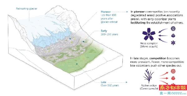 在近期发表于《生态学与进化前沿》(Frontiers in Ecology and Evolution)杂志上的一项研究中,科学家表示,冰川消融对各种植物物种的影响参差不齐。