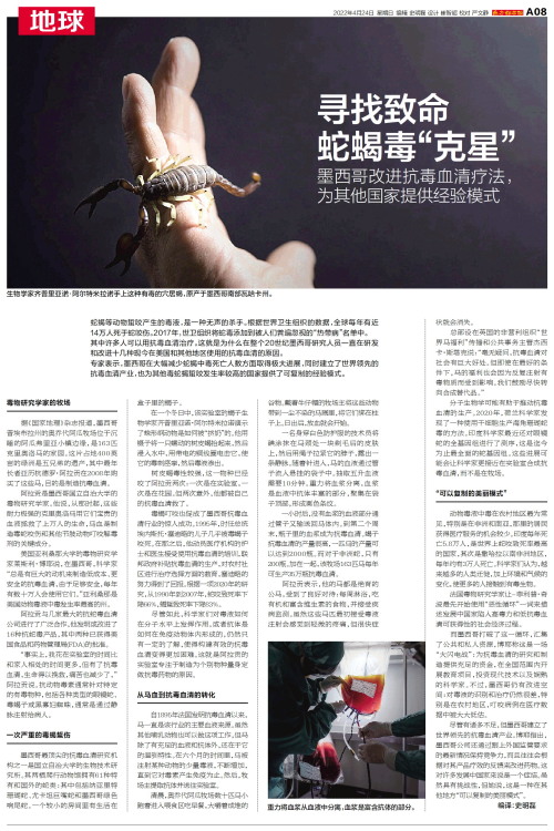 蛇蝎等动物蜇咬产生的毒液,是一种无声的杀手。根据世界卫生组织的数据,全球每年有近14万人死于蛇咬伤。2017年,世卫组织将蛇毒添加到被人们普遍忽视的“热带病”名单中。其中许多人可以用抗毒血清治