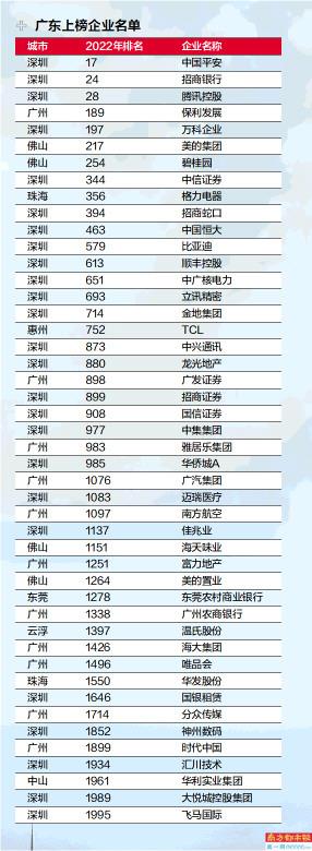 那么,广东企业的上榜情况如何呢?据南都记者统计,广东共有8个城市46家企业进入2022福布斯全球企业2000强。其中深圳上榜企业最多,其次为广州,佛山上榜企业排在全省第3位。