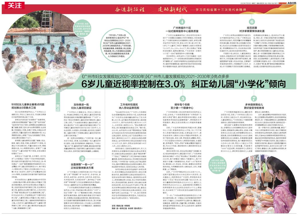 7月19日,广州市人民政府新闻办公室召开《广州市妇女发展规划(2021-2030年)》《广州市儿童发展规划(2021-2030年)》新闻发布会。广州市妇联、市发展改革委、市教育局、市公安局、市
