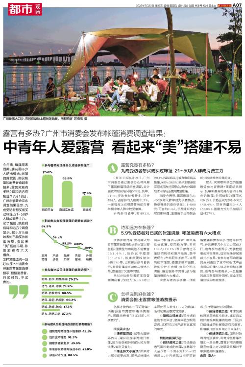 广州番禺大刀沙,市民在草地上搭帐篷晚餐。 南都拍客 苏裔燕 摄 今年来,每逢周末假期,朋友圈不少人晒出绿地、帐篷的露营图,购买帐篷的消费者也越来越多。露营究竟有多