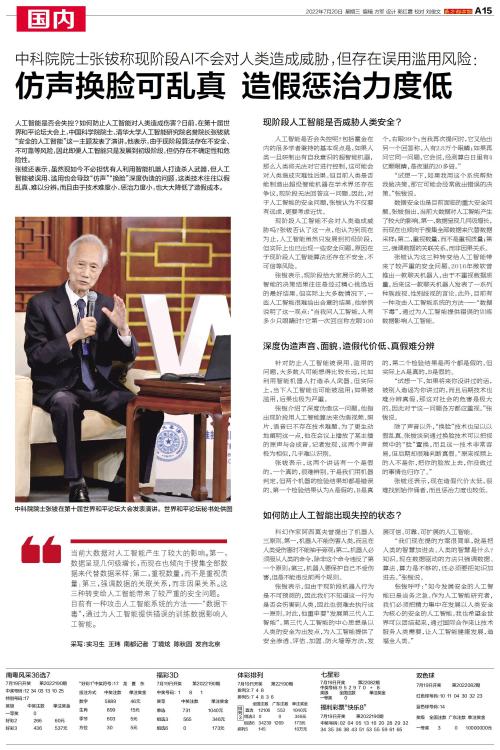人工智能是否会失控?如何防止人工智能对人类造成伤害?日前,在第十届世界和平论坛大会上,中国科学院院士、清华大学人工智能研究院名誉院长张钹就“安全的人工智能”这一主题发表了演讲。他表示,由于现阶段算