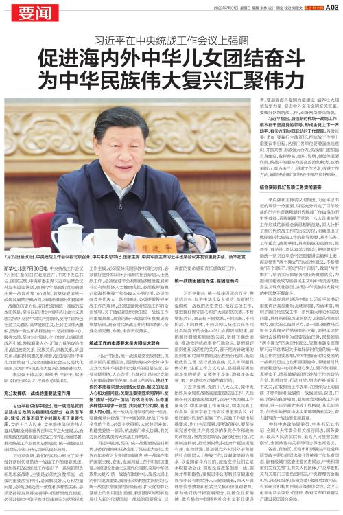 7月29日至30日,中央统战工作会议在北京召开。中共中央总书记、国家主席、中央军委主席习近平出席会议并发表重要讲话。 新华社发 新华社北京7月30日电 中央统战工作会议