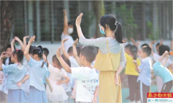 幼儿园的孩子们在早操。 南都拍客 苏升 摄