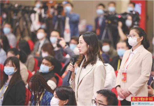 党的二十大新闻中心举办第四场记者招待会,记者在提问。 新华社发