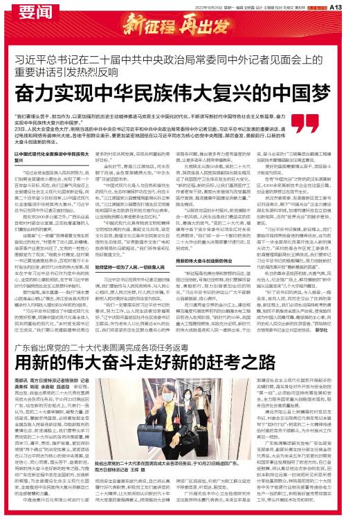 我省出席党的二十大代表在圆满完成大会各项任务后,于10月23日晚返回广东。