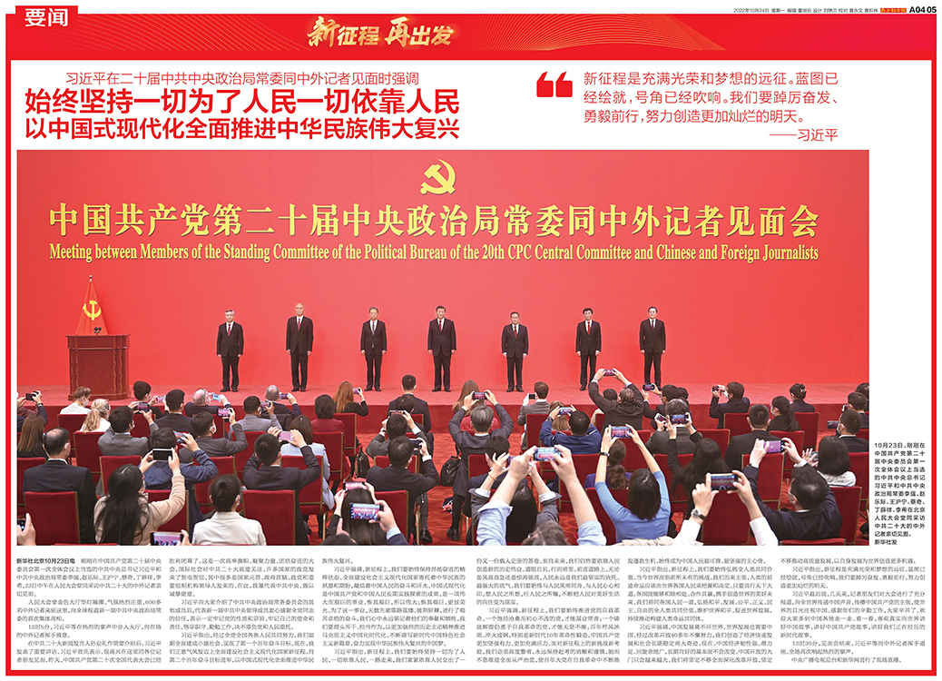 中国共产党第二十届中央政治局常委同中外记者见面会。