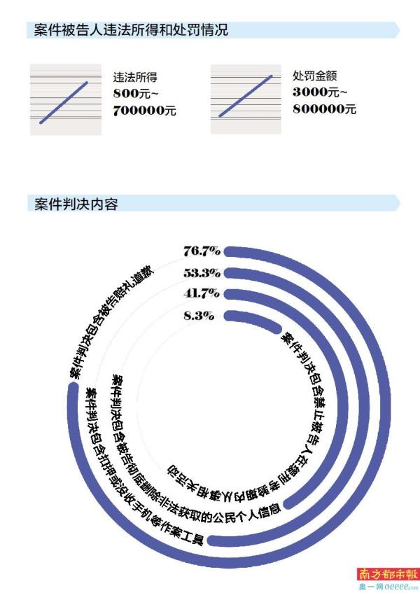 除了罚金,侵犯公民个人信息还会叠加一定刑罚,在惩治力度方面,九成案件的被告人被判处拘役或有期徒刑,刑期在一年及以上的案件达23起。