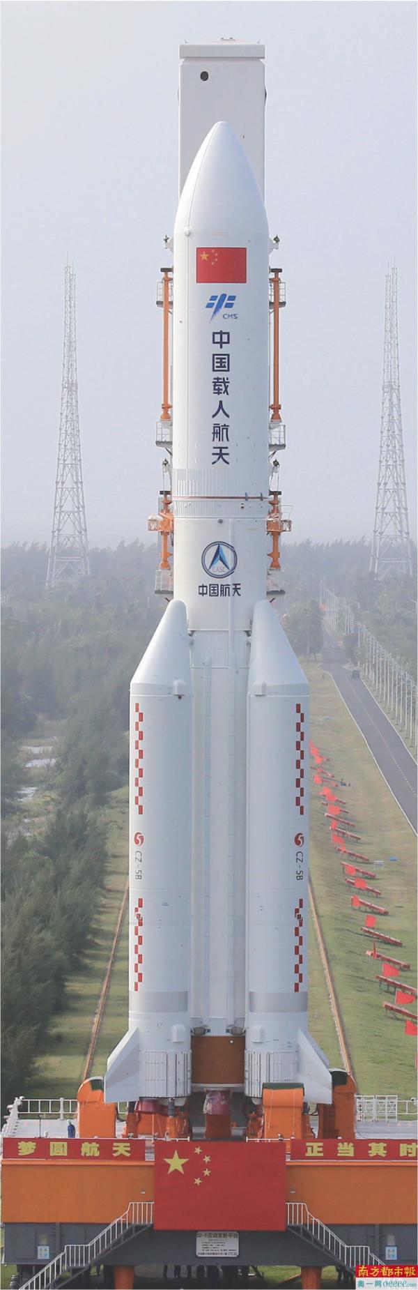 据悉,长征五号B运载火箭是我国低轨运载能力最强火箭,这是它第三次负责空间站舱体的发射任务;是中国近地轨道运载能力最大的新一代运载火箭,全箭总长53.7米,起飞重量837.5吨。