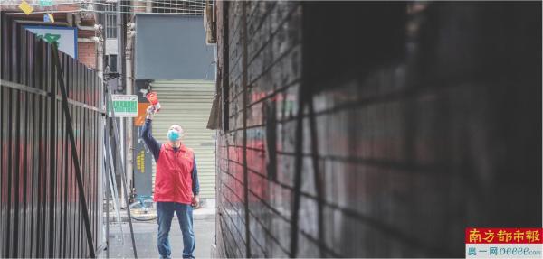 白云区云城街道萧岗经济联社,徐赞超的日常工作之一就是提醒居民做好防护。 南方日报记者 金镝 摄