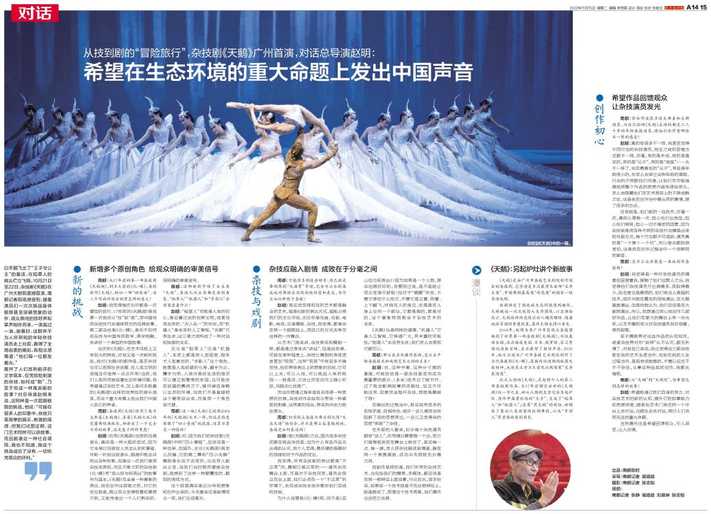 10月21日至22日,杂技剧《天鹅》在广州大剧院震撼首演。