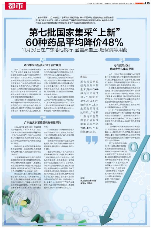 广东药价再降!11月30日起,广东再有60种药品落实集中带量采购,涵盖高血压、糖尿病等用药,平均降价达48%。